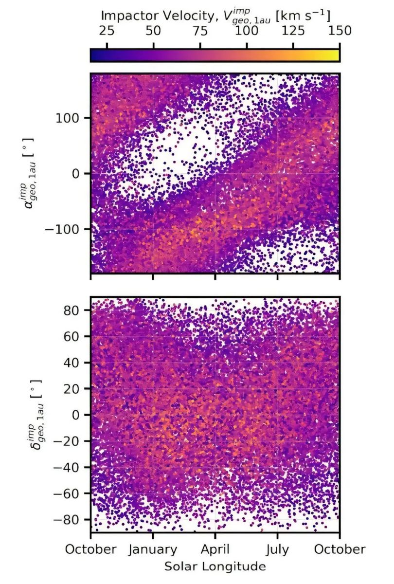На основе этой симуляции удалось выделить около 10 тысяч потенциальных «ударников», способных пересечь орбиту Земли. Чаще они поступают из направления солнечного апекса — то есть со стороны, куда движется Солнце — и из галактической плоскости, где сосредоточено большинство звезд.