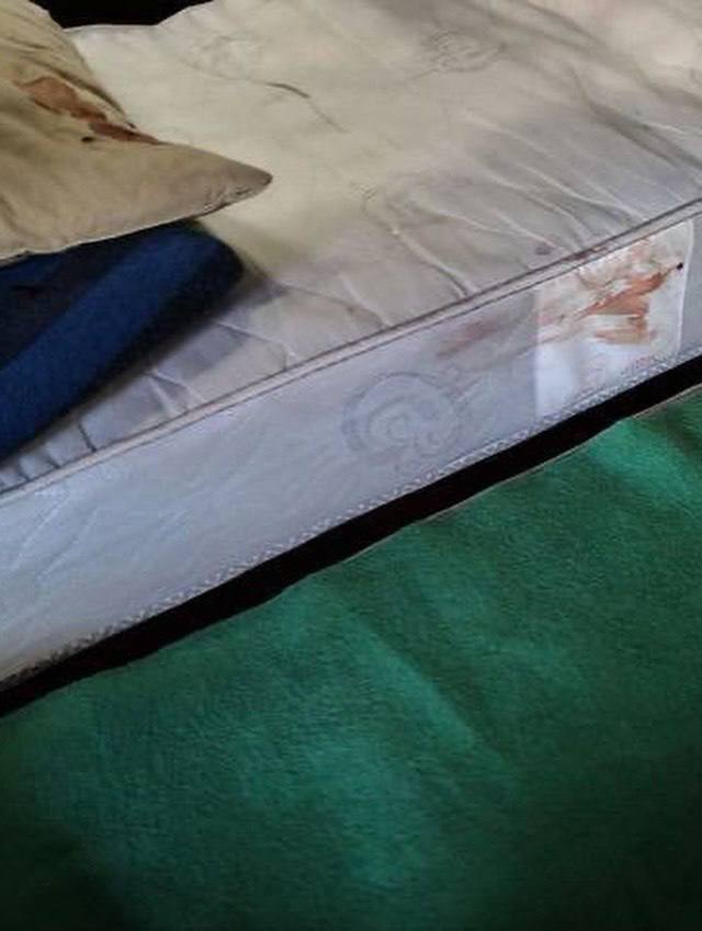 На опубликованных снимках видно, что условия пребывания в центре ужасные — грязные и заброшенные помещения, кровати в крови, а в санузлах — полная антисанитария.