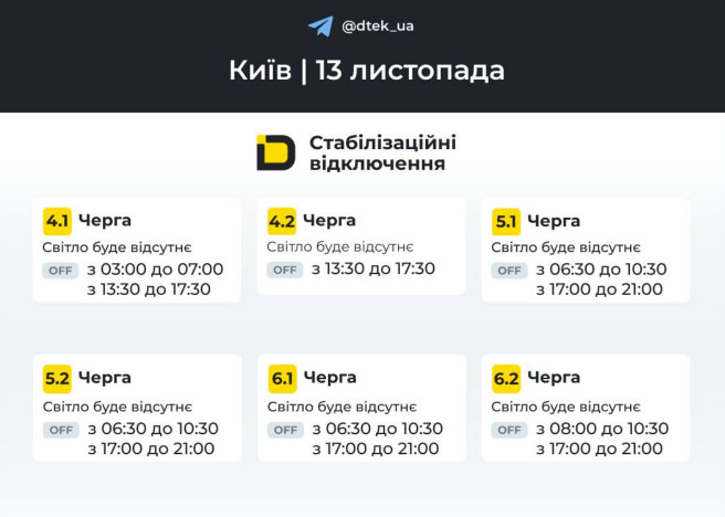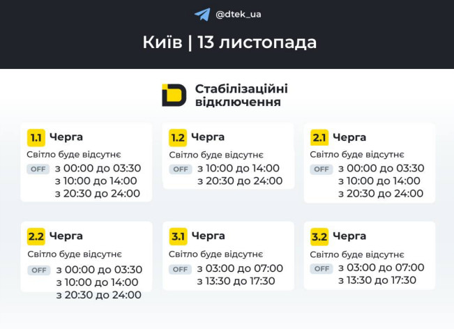 Причиной введения графиков является необходимость сбалансировать энергосистему после массированных российских ракетно-дроновых атак на энергетические объекты.