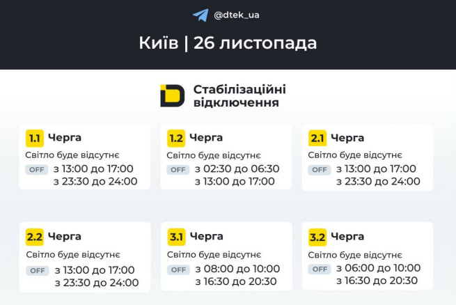 Причиной введения графиков является необходимость сбалансировать энергосистему после массированных российских ракетно-дроновых атак на энергетические объекты.
