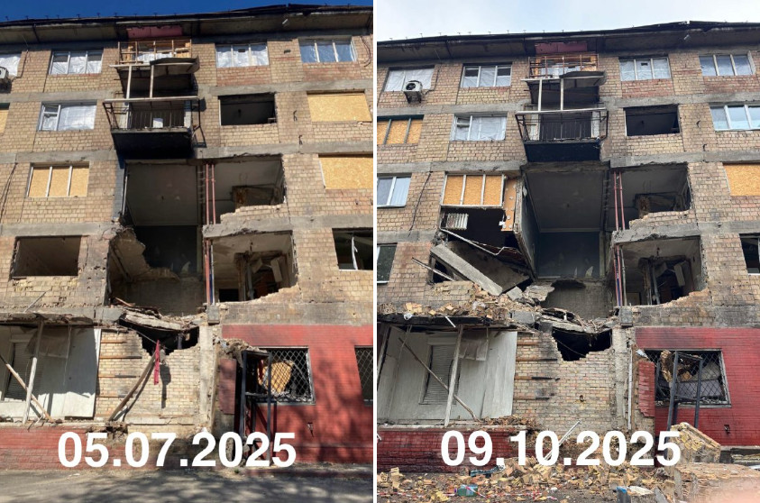 «Після ліквідації наслідків атаки провели попереднє та детальне інструментальне обстеження. За його результатами загрози обвалу в цій частині будинку не було.