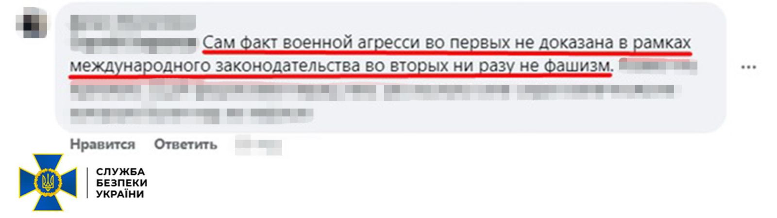 У своїх «публікаціях» він заперечував причетність російських окупантів до повітряних ударів по цивільних об’єктах України і розповсюджував фейки про ситуацію на фронті», – йдеться у повідомленні СБУ.