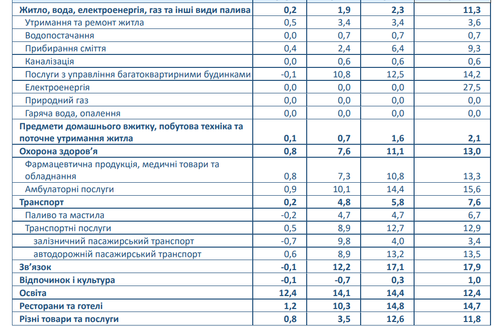 Освітні послуги подорожчали одразу на 12,4%, зокрема вища освіта — на 16,8%, середня — на 8,5%.