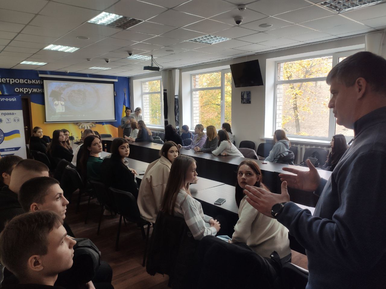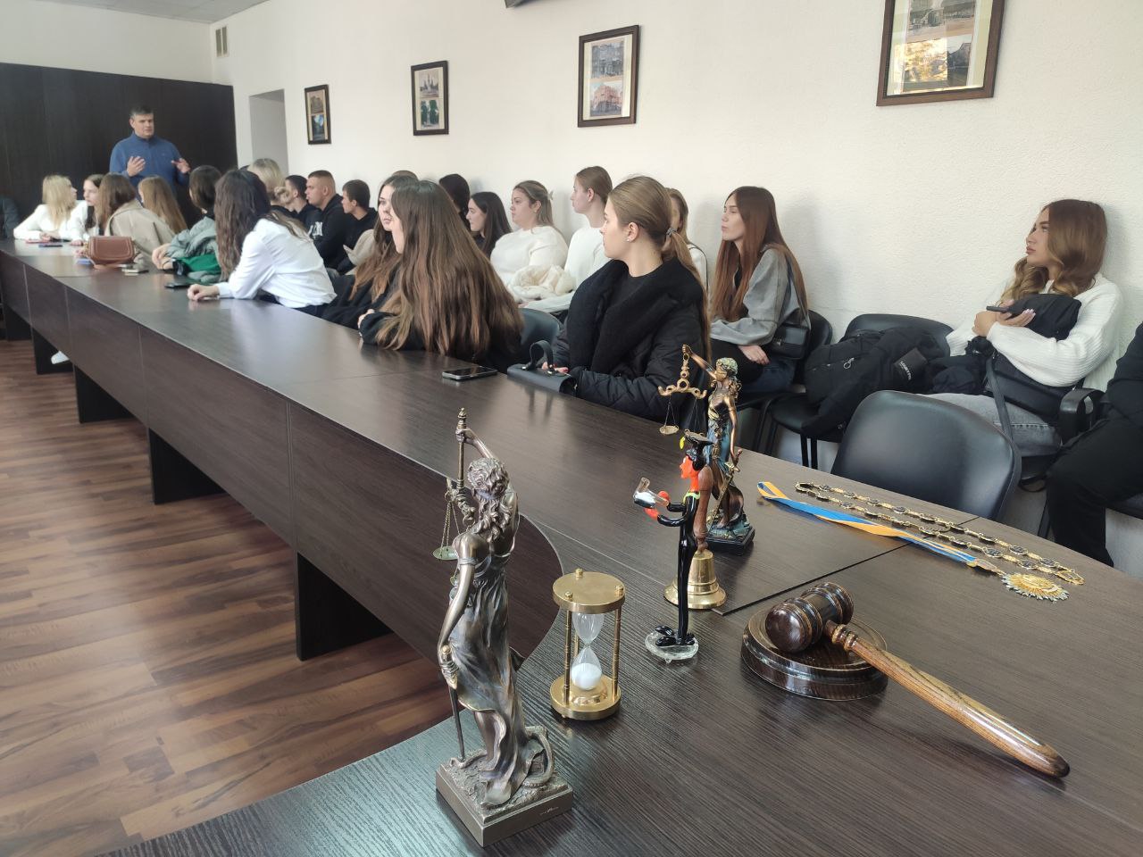 Голова суду Володимир Горбалінський привітав студентів і підкреслив важливість формування у майбутніх юристів розуміння принципів роботи судової системи, відкритості правосуддя та значення довіри до суду як інституції.