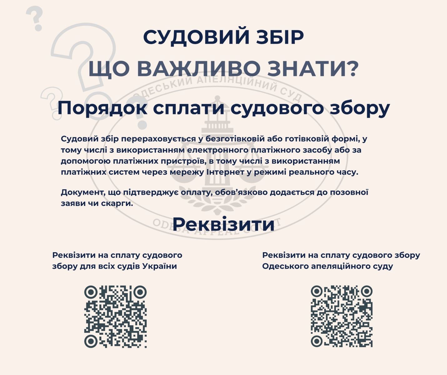 Судовий збір є невід’ємною частиною судового процесу в Україні. Його сплата передбачена законом при поданні позовів, скарг або заяв до суду, а також при отриманні судових документів. Про порядок сплати судового збору розповіли в Одеському апеляційному суді.
