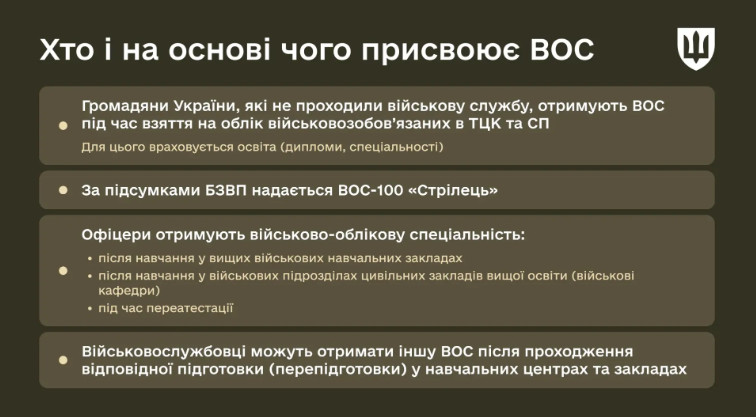 Міністерство оборони України роз’яснило питання щодо військово-облікової спеціальності (ВОС).