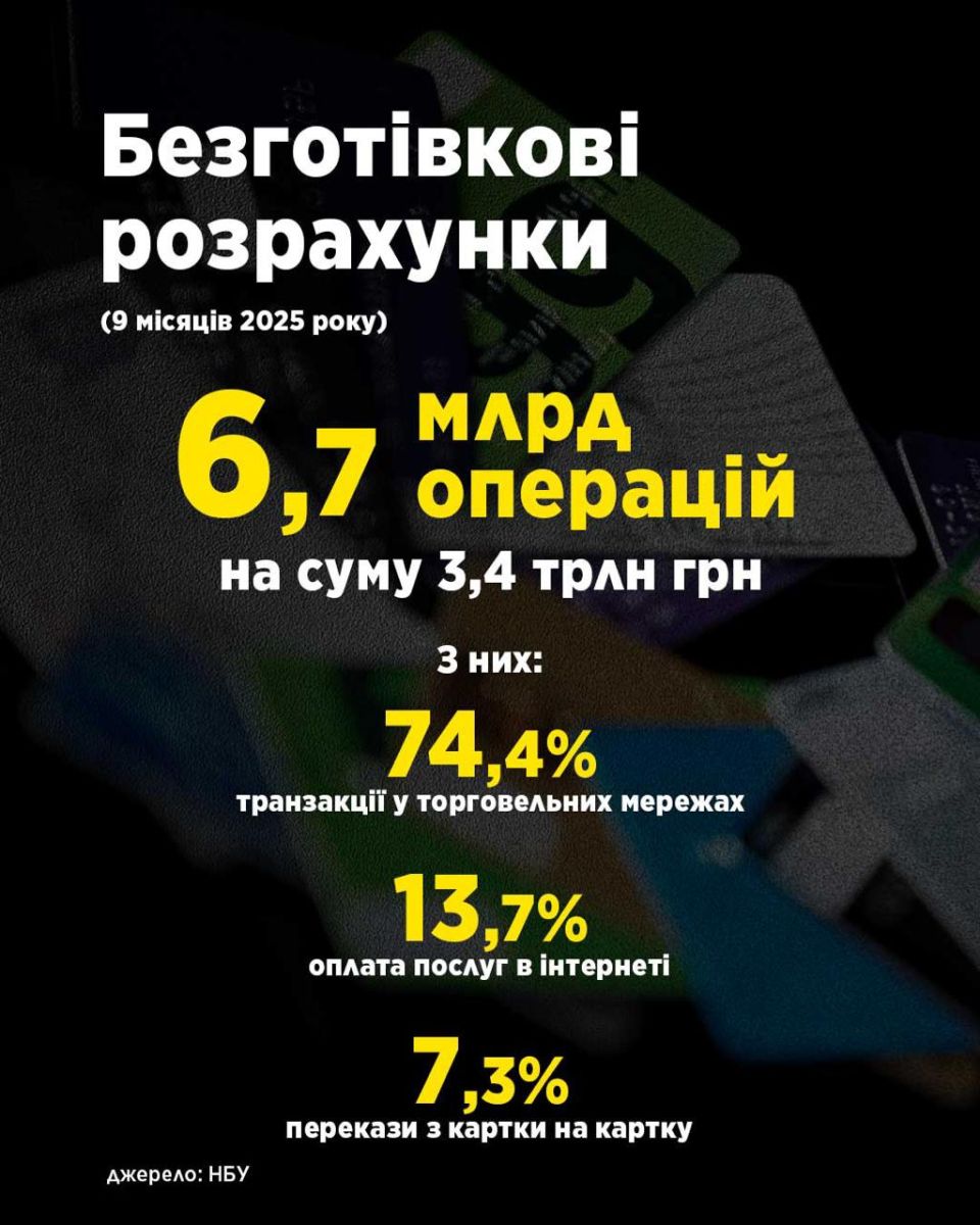За 9 місяців 2025 року українці здійснили 6,7 млрд безготівкових операцій — це на 11,7% більше, ніж за аналогічний період торік. Про це повідомив голова Комітету з питань фінансів, податкової та митної політики Данило Гетманцев, посилаючись на дані Національного банку.