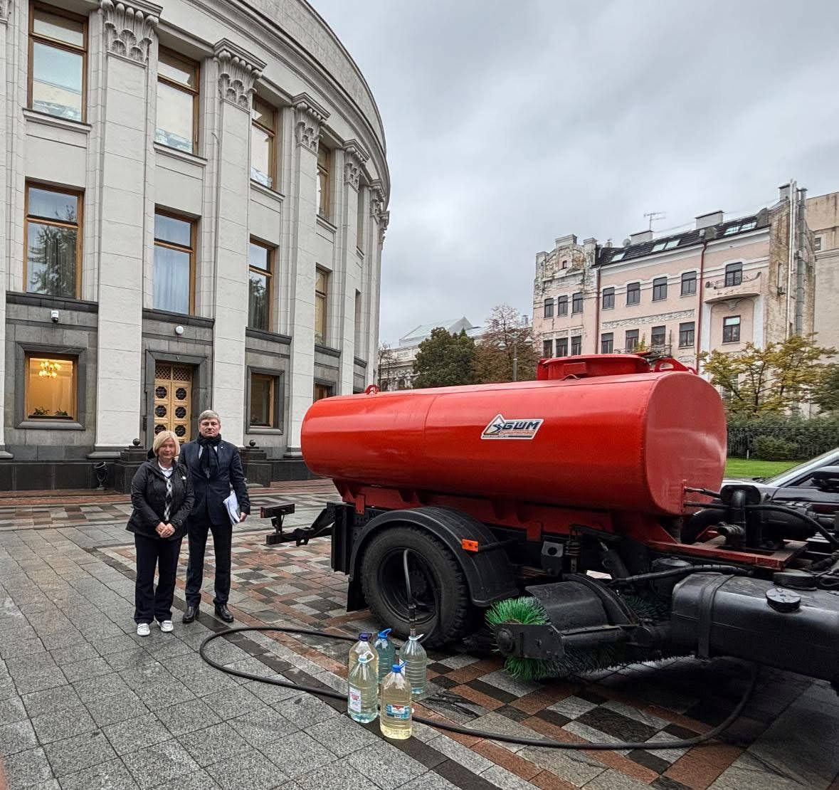 Після російського обстрілу у Києві проблеми з водою та світлом. Навіть урядовий квартал столиці залишився без водопостачання. Як повідомила народна депутатка Ірина Геращенко, до Верховної Ради підвезли машину з технічною водою для базових потреб парламенту.