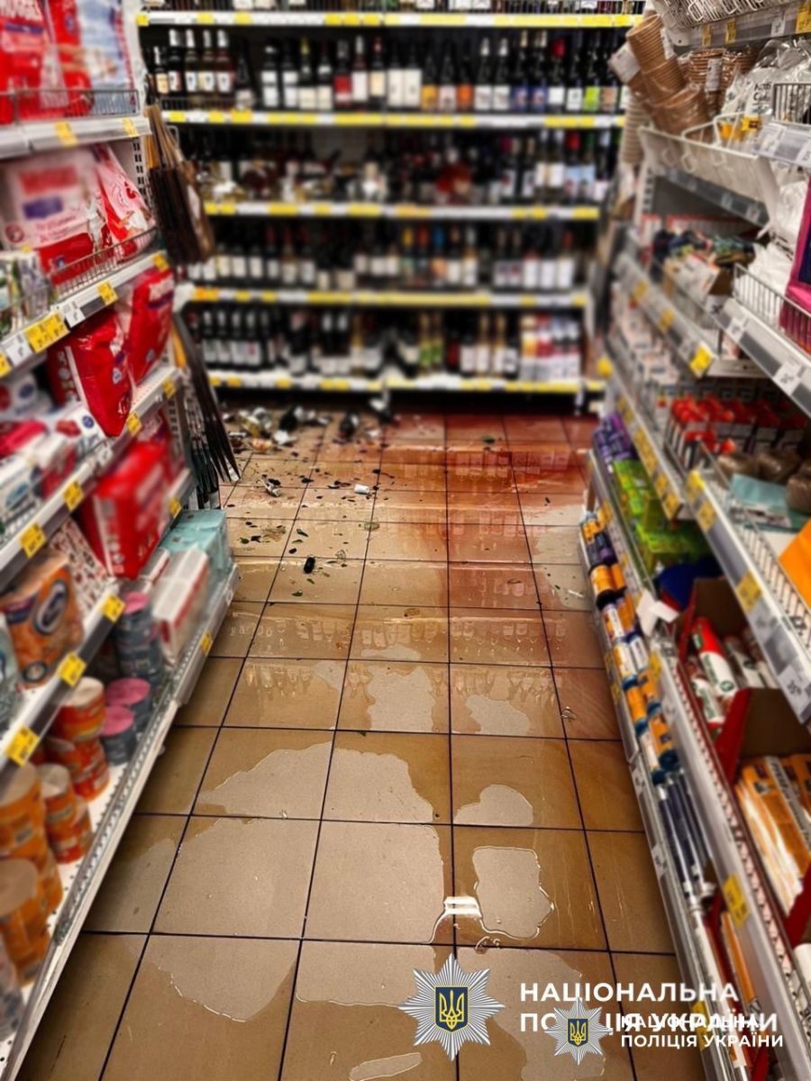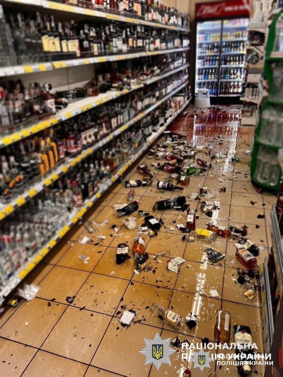 Коли охоронець зробив йому зауваження, чоловік почав кричати, скидати пляшки з полиць і навмисно їх розбивати.